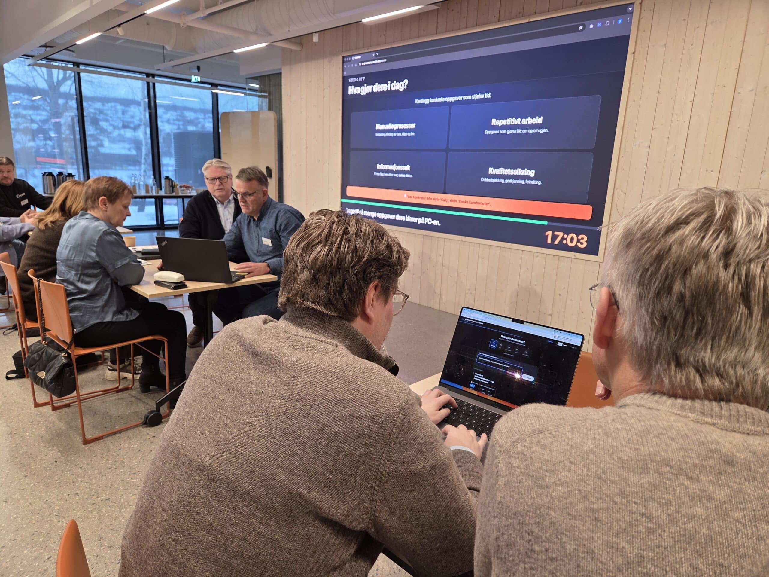 Klosser Innovasjon har nå startet et KI‑program, utviklet i samarbeid med 7STERKE og Twoday. Den første av fire praktiske workshoper ble gjennomført denne uken – med fullt hus! Ti av 7STERKEs medlemsbedrifter deltar i programmet, alle med et klart mål: å forstå og ta i bruk kunstig intelligens på en trygg og verdiskapende måte.